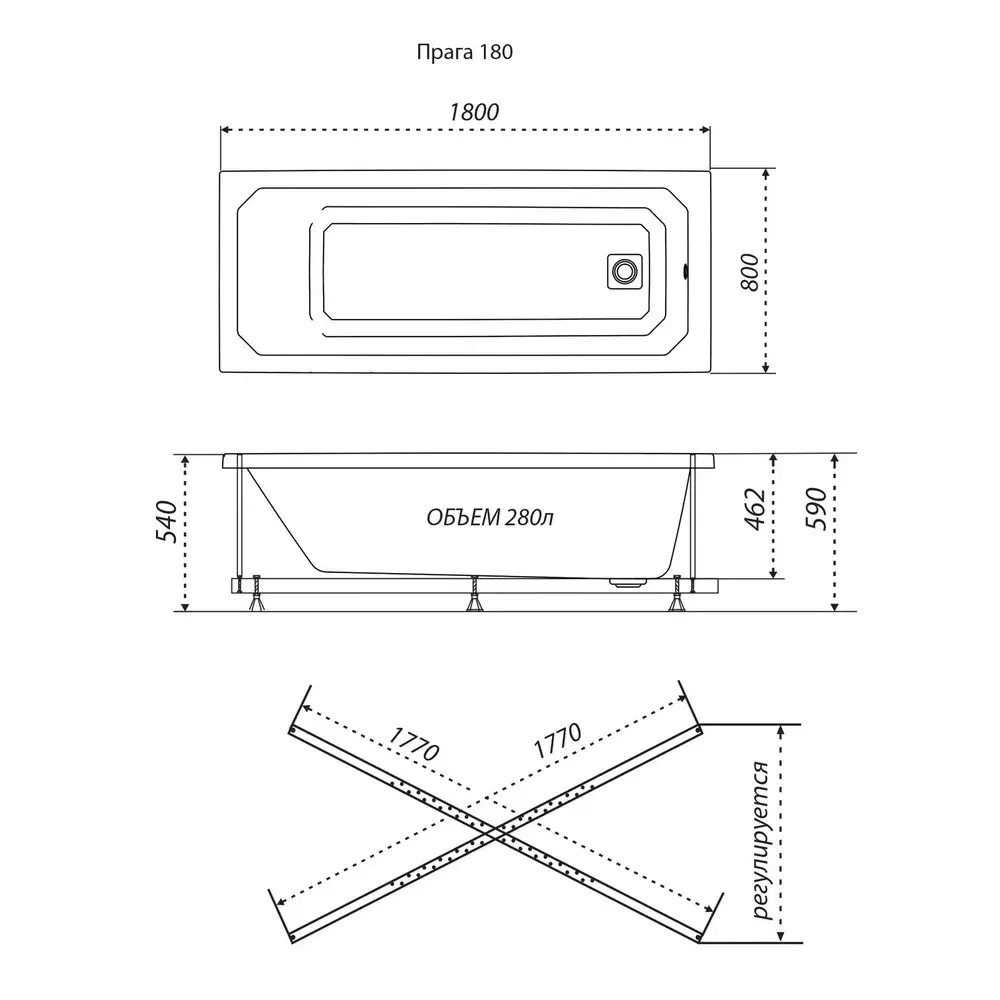 Акриловая ванна Triton из коллекции Прага имеет размер 180х80 см. Форма прямоугольная. Страна изготовитель — Россия. Каркас и установочный комплект, слив-перелив не входит в базовую комплектацию и приобретается отдельно. Дополнительно комплектуется смесителем, передней и(или) боковой панелью.