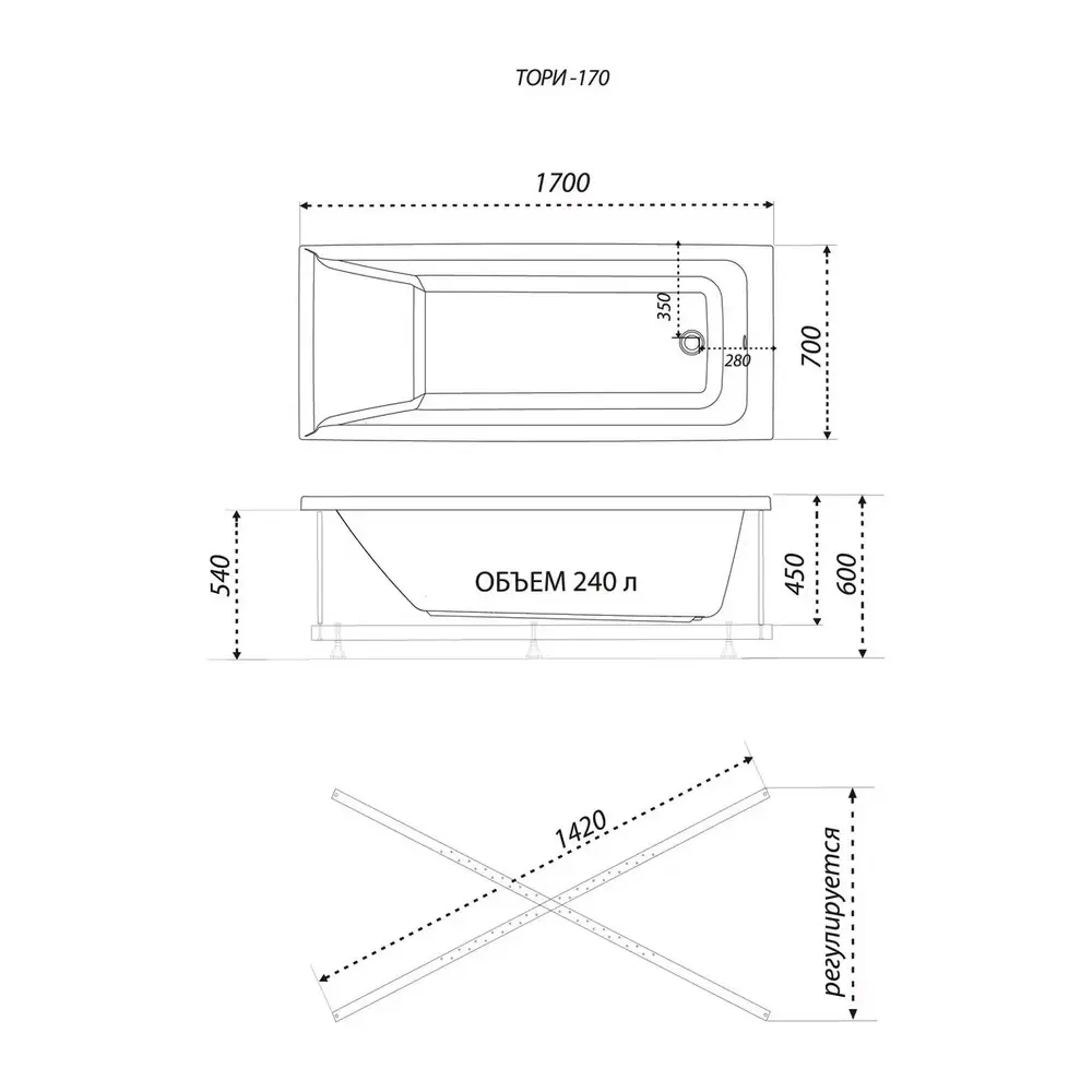 | Тип изделия | Ванна акриловая |
