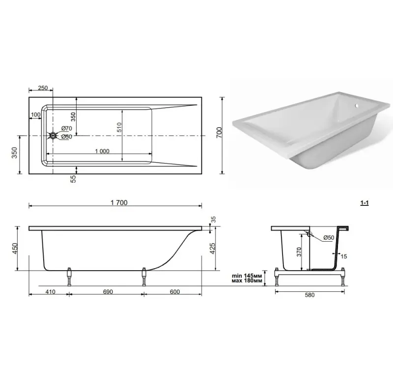 | Тип изделия | Ванна из литьевого мрамора |