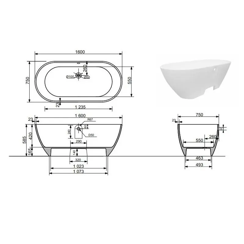 | Тип изделия | Ванна из литьевого мрамора |