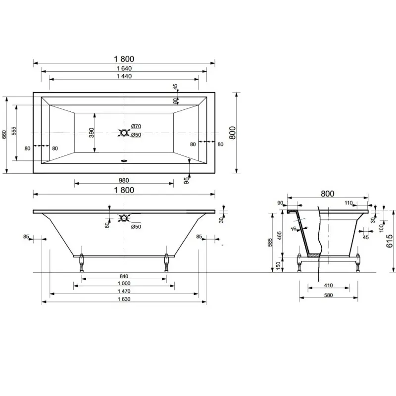| Расположение перелива | По центру |