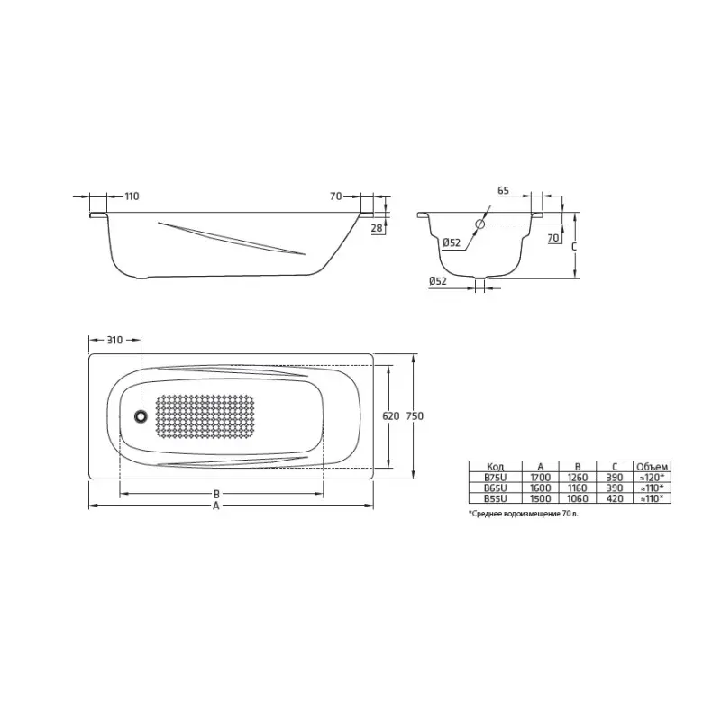 | Тип изделия | Ванна стальная |