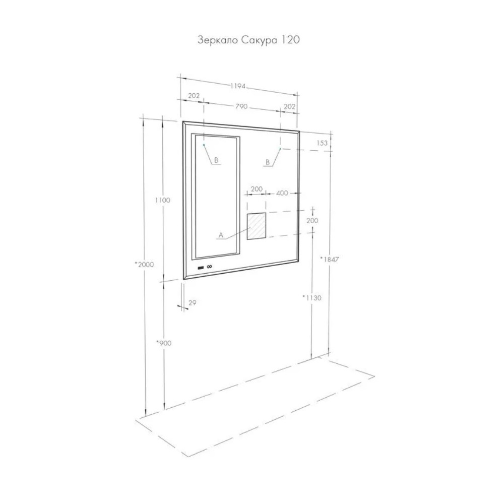 Зеркало Aquaton Сакура 119,4 с антизапотеванием и часами 1A220002SKW80